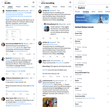We utilize a wide range of AI, search engines, paid databases, social media, news sites and niche communities.